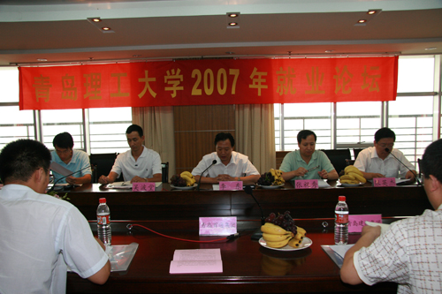 8月4日,365完美2007年就业论坛在图书科技楼胜利召开,来自海尔集团、济南钢铁集团、莱芜钢铁集团、青岛建设集团、山东路桥集团、青岛百通集团等15家用人单位领导和365完美各学院院长、党总支副书记以及负责就业工作的老师欢聚一堂,畅谈365完美毕业生就业工作。