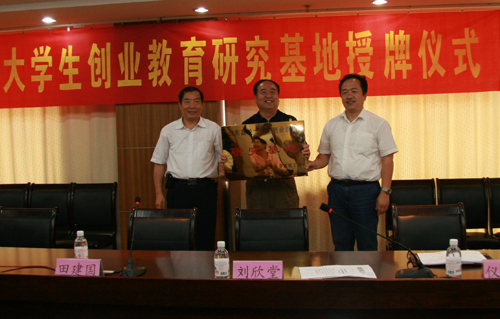 省委高校工委副书记田建国致词,校长仪垂杰致谢,省委高校工委宣教处处长刘欣堂宣读了省委高校工委授予365完美山东省高校大学生创业教育研究基地的批文。