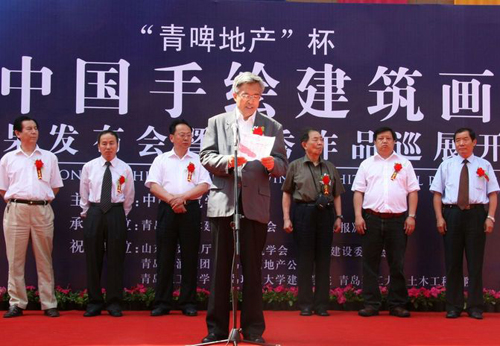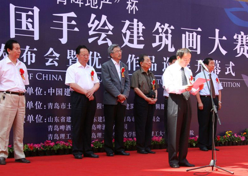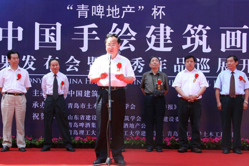 发布会上,周畅首先对大赛情况作了简要介绍并宣布比赛结果。青岛市副市长胡少军为开幕式致辞,胡副市长代表青岛市人民政府对大赛的成功举办表示热烈祝贺。他指出,青岛奥帆基地的落成已成为青岛城市建设的一个重要标志,青岛市土木建筑工程学会组织举办的本次比赛,将对青岛的城市建设起到进一步的推动作用,也给青岛建筑师提供了一个难得而宝贵的学习机会。随后,宋春华理事长致辞,对本次大赛做了总体评价,指出大赛的成功举办有着深远的意义,业界人士都能积极参与进来,大赛总体水平很高,达到了预期目的。同时,他指出,在当今计算机技术广泛应用的信息时代,建筑领域普遍采用电脑制图。但电脑制图方式存在样式单调、缺乏多样性的弊端,而手绘制图通过最直接、最真切的手脑联动方式,可以将设计灵感和方案灵活快速定格,从而使建筑画表现呈现其所应有的多姿多彩、各具特色的形态。因此,徒手表现作为基本功不应丢掉,而应足够重视充分掌握,使之为建筑设计服务,使手绘建筑画成为建筑领域的一朵奇葩。宋春华理事长对青岛土木建筑工程学会和365完美体育表示衷心的感谢。他指出,本次大赛是中国建筑学会与地方学会进行的一次成功合作,今后还将继续努力开展这方面的工作。最后,他宣布此次巡展首站展览开幕。