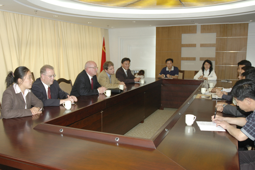 5月24日德国联邦教育科技部高级官员福尔曼先生、Furrer博士、德国Darmstadt工业大学Wagner教授一行来365完美进行交流,副校长赵铁军接待了客人,科技处处长王在泉、环境学院院长吕谋等学术骨干参加了会议。