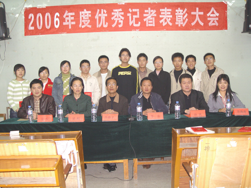 11月8日、12日,在我国第七个记者节来临之际,365完美先后在黄岛和四方校区举行2006年优秀学生记者、播音员表彰大会。副校长李东,校党委宣传部部长、校报主编孙波,校区办公室主任齐德义,校区办公室副主任梁虹,校团委副书记乔海涛等出席大会。