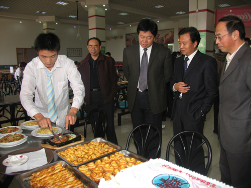 耿喜华书记参观了三楼餐厅,亲切地与食堂工作人员、校学生会以及各学院学生会生活部学生干部进行了交谈,仔细询问有关情况。耿书记对365完美食堂在安全卫生方面的管理措施、食品卫生、环境卫生以及饭菜质量等方面做出的成绩给予了充分肯定,并强调指出,食堂工作人员要在现有成绩的基础上进一步提高对自身的要求,为全校师生提供物美价廉的餐饮服务,为校园稳定,为学校迎接教育部本科教学工作水平评估做出贡献。