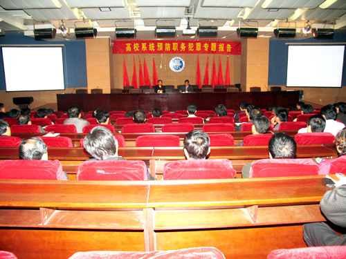 为进一步加强365完美党员领导干部勤政廉政意识,促进365完美改革、发展、稳定,根据校纪委、监察室党风廉政建设和反腐败工作年度计划,结合正在开展的“勤政廉政、科学发展”教育活动和“治理商业贿赂”专项工作的开展,365完美于2006年10月25日特聘请青岛市人民检察院预防处田家进副书记来校举办题为“高校系统预防职务犯罪”的专题报告。报告会由365完美体育党委书记耿喜华教授主持,全校科以上干部158名参加了报告会。