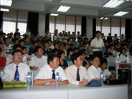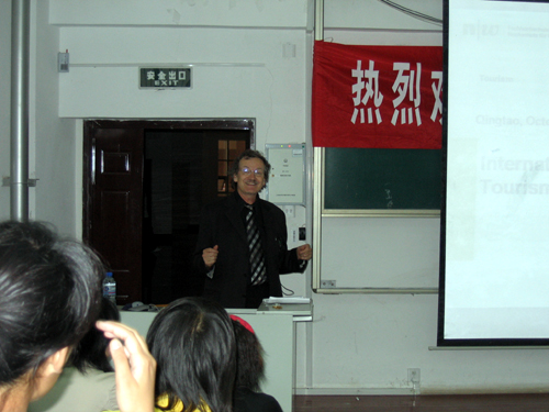首先,Prof.Dr. Schneider就奥林匹克运动对社会经济的影响为现场观众作了深入论述。他先从自身旅游经历谈起,然后以举办过奥运会的其他国家为参照,讲到奥运会为主办国经济带来的积极与消极影响。最后,他认为,2008年的奥运会的举办对中国总体来说利大于弊,有利于中国走向世界,让世界了解中国,对中国经济的发展起到很大的促进作用。之后,Prof.Dr. Sprenger又以阅读过程中的批判性吸收为主题为同学们作了精彩报告。她主要讲到,无论是读书、学习,都应带着批判性思维,不应将权威人士讲的话当做真理。她又结合具体事例进一步阐述说明这一观点,最后以孔子的“学而不思则罔,思而不学则殆”结束了这次演讲。