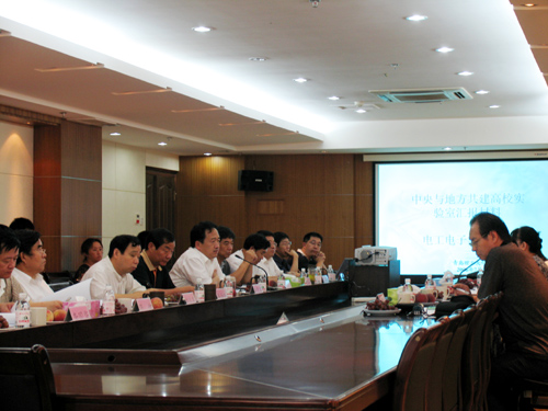 副校长赵铁军汇报了学校前期共建项目概况以及进一步建设和发展中所面临的主要困难。电工电子实验中心和暖通实验室的负责人向专家组详细汇报了申报项目的现状及建设构想。
