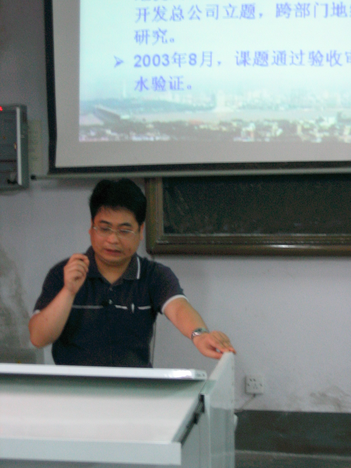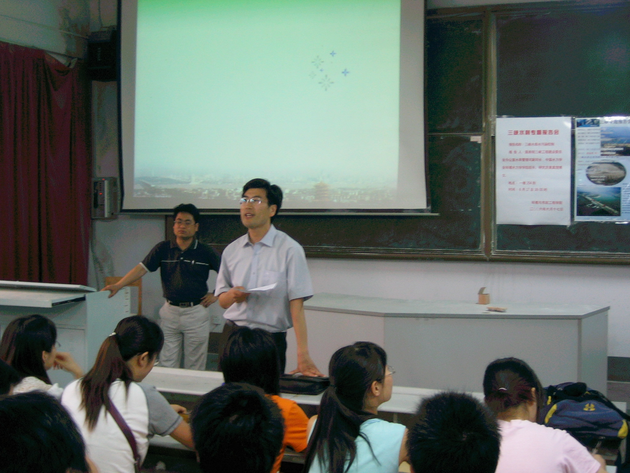 黄博士首先作了《三峡水库水污染控制》的学术报告,系统讲述了研究背景、库区污染负荷现状与预测、库区水环境现状及水文水质污染负荷同步观测、数学模型及水质预测、三峡水库水环境容量计算机水污染控制的对策研究、主要结论等六个方面的情况,然后针对同学们提出的关于三峡库区生物多样性、文物古迹保护、三峡大坝蓄水前后的境况、水资源利用等话题与大家进行了交流