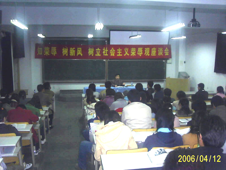 4月12日晚,由团委举办的“知荣辱,树新风,树立社会主义荣辱观”座谈会在305阶举行。校党委副书记杨向荣,团委书记陈伟等出席了座谈会。