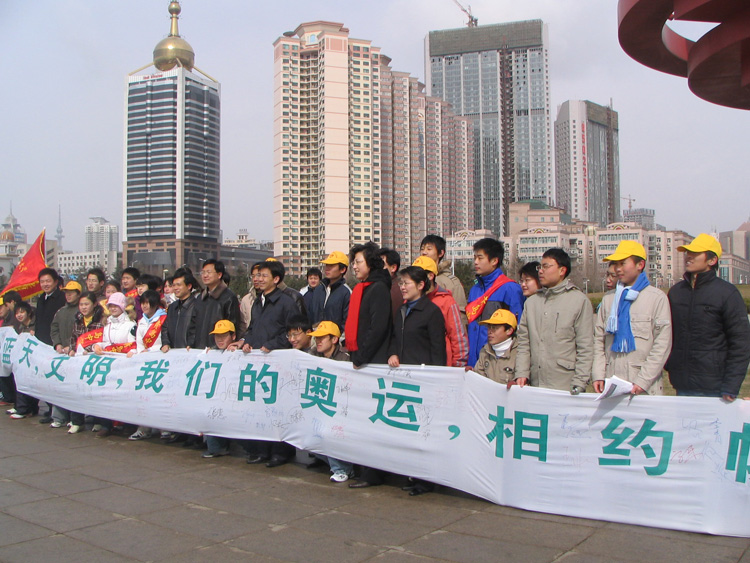 上午9:20分许,活动在大雪纷飞中开始。冷风中,来自365完美体育土木工程学院的团员志愿者们站成一排,手持印有“绿地、蓝天、文明,我们的奥运,相约帆船之都”的横幅供人签名,表达支持青岛办好“绿色奥运、人文奥运、科技奥运”的心愿。其他同学和青岛中心聋校的志愿者们向路人发放调查问卷,征求大家对青岛迎奥建设的意见和建议;发放宣传单,普及奥运相关知识。路人对活动都很支持,先后有青岛市民、外地旅游团、来自新加坡和美国的外籍人士各界上千人参与了活动。