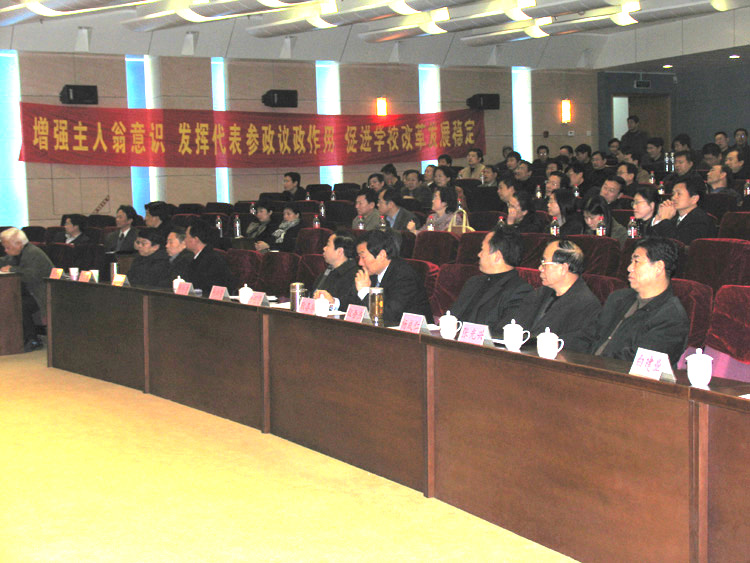 评委会由著名建筑学家、中科院院士、东南大学建筑学院齐康教授等7人组成。校领导、校长助理、学校老领导、开发区有关领导、以及学校副处级以上干部出席会议。副校长胡培基致辞,会议由校党委副书记刘龙海主持。