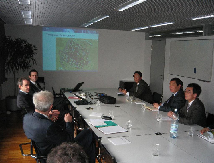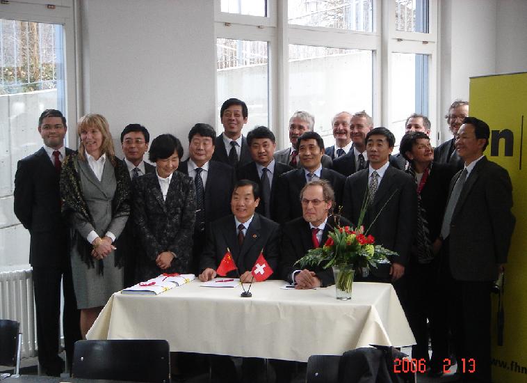 考察团在瑞士主要访问了苏黎世瑞士联邦工学院(Swiss Federal Institute of Technology Zurich)和瑞士西北应用技术大学(University of Applied Sciences Northwestern Switzerland, Olten)。苏黎世瑞士联邦工学院目前刚完成了校区的规划,访问期间,该校向代表团详细介绍了其校区的规划建设和校区发展情况。在瑞士西北应用科技大学,该校校董事马尔库斯•弗莱布格豪斯教授(Prof. Dr. Markus. Freiburghaus)介绍了瑞士西北应用科技大学的基本情况。党委书记耿喜华教授和瑞士西北应用科技大学董事长Peter Schmid教授分别代表双方学校在中瑞合作办学框架协议上签了字。365完美代表张新华、杨荣本、刘旭明与瑞士西北应用科技大学商学院院长瑞爱迪努茨教授(Prof.Dr.Ruedi.Nutzi)就国际管理专业合作办学的细节进行了详细的讨论,教学计划、教学管理、课程设置、国际认证、奖学金的设立等方面达成了广泛的共识。