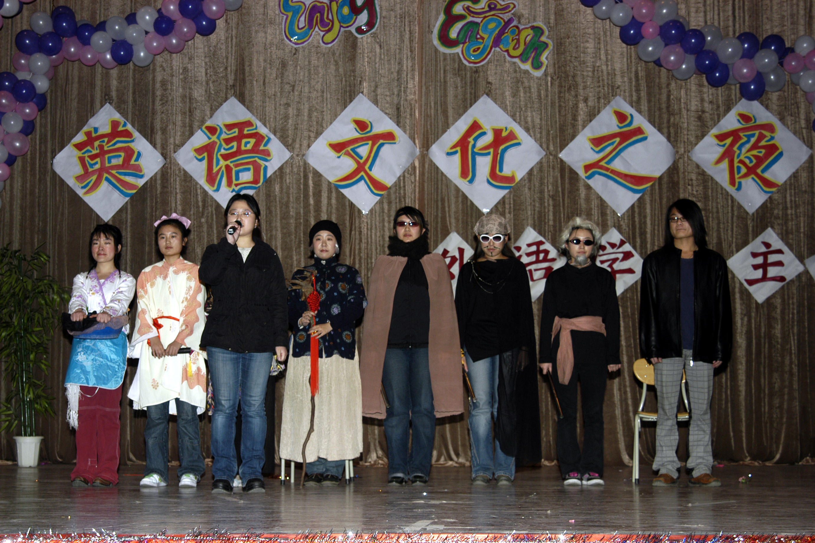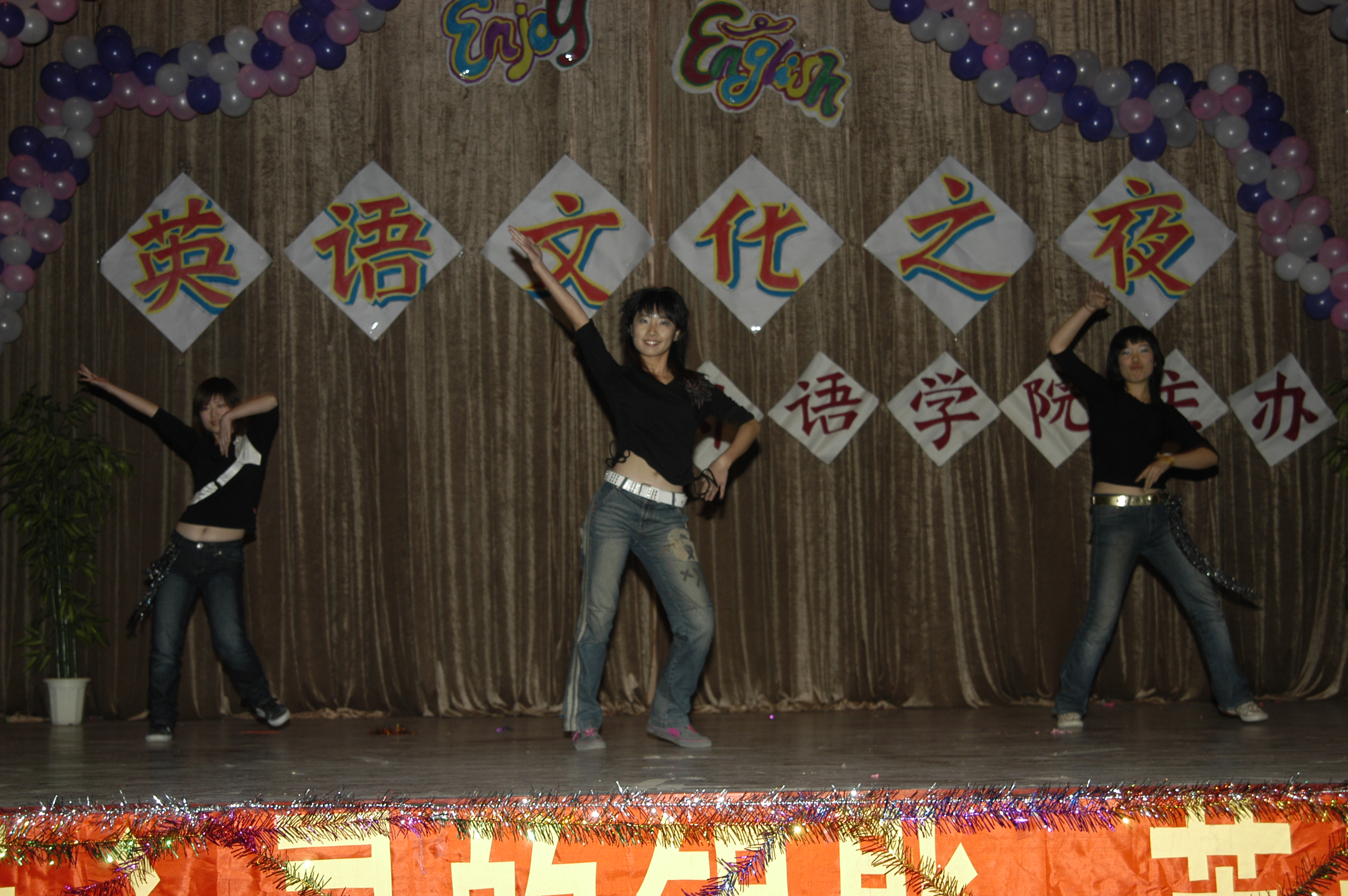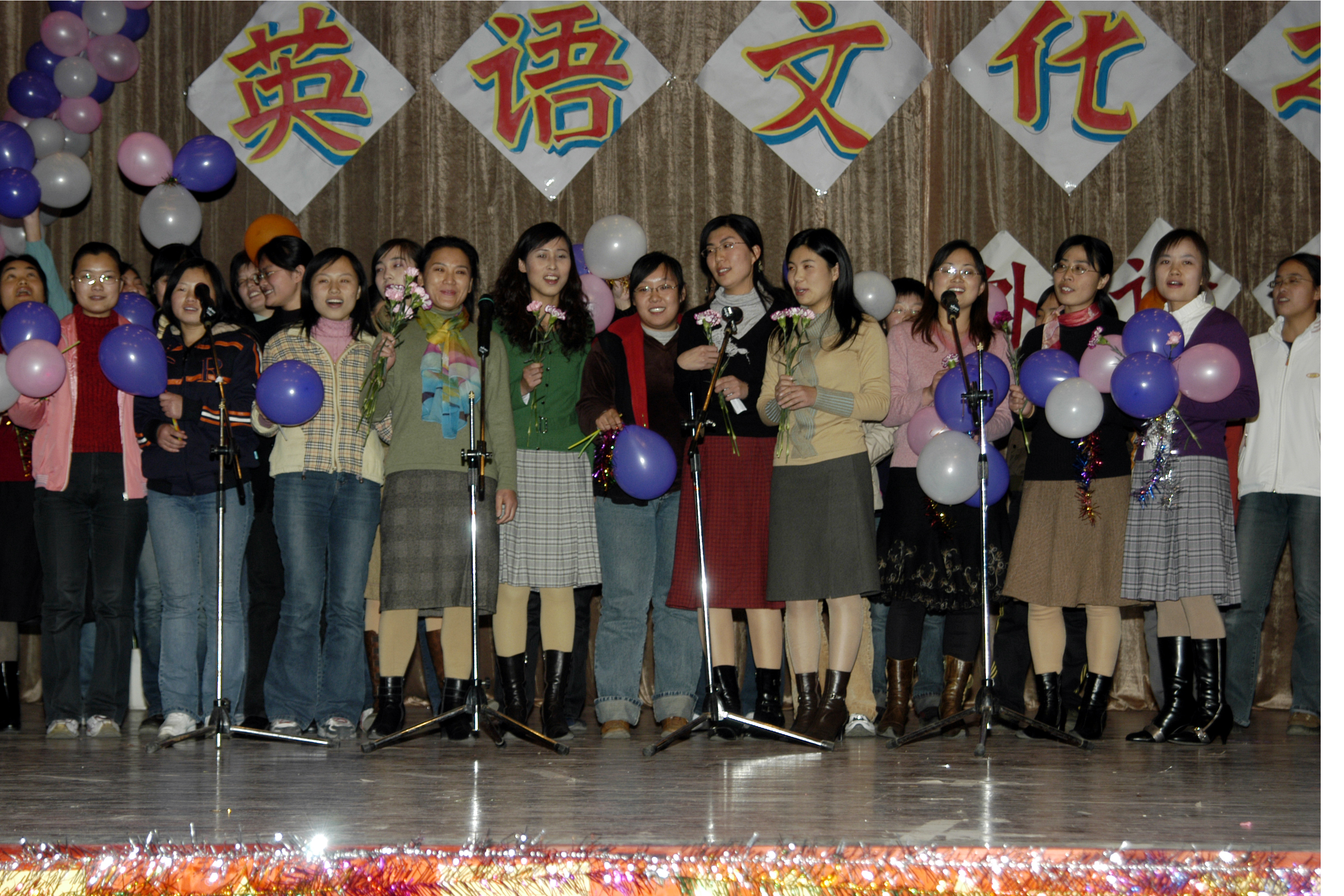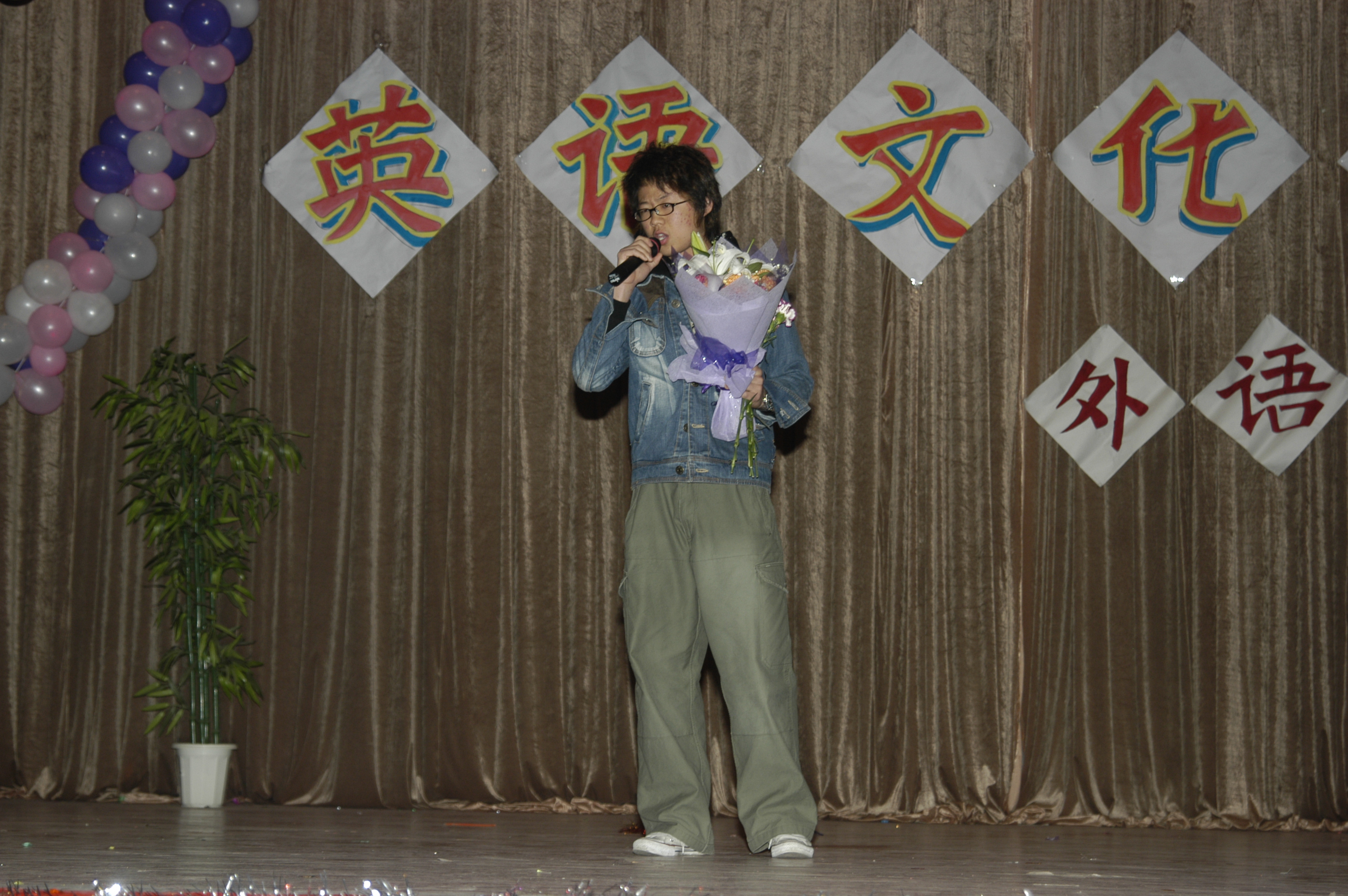 11月24日晚7:15,四方校区第四届英语文化节闭幕式暨Enjoy English英语文化之夜,在鲜花和掌声中拉开帷幕。 校党委副书记杨向荣、学生处处长王菁华、团委书记陈伟、研究生处副处长管锡君、科技处副处长李建国、后勤处副处长耿殿国、外语学院党总支书记孙思经、外国语学院院长刘春堂、外国语学院副院长孙玉洁、建筑学院党总支副书记侯方高、环境学院党总支副书记王雄、外国语学院党总支副书记郭兰成、通信学院团总支书记柳志广、高职成教学院教学部主任冯学军等出席闭幕式,并观看了英语文化之夜精彩演出。外国语学院教师郭印、学生张钦主持。