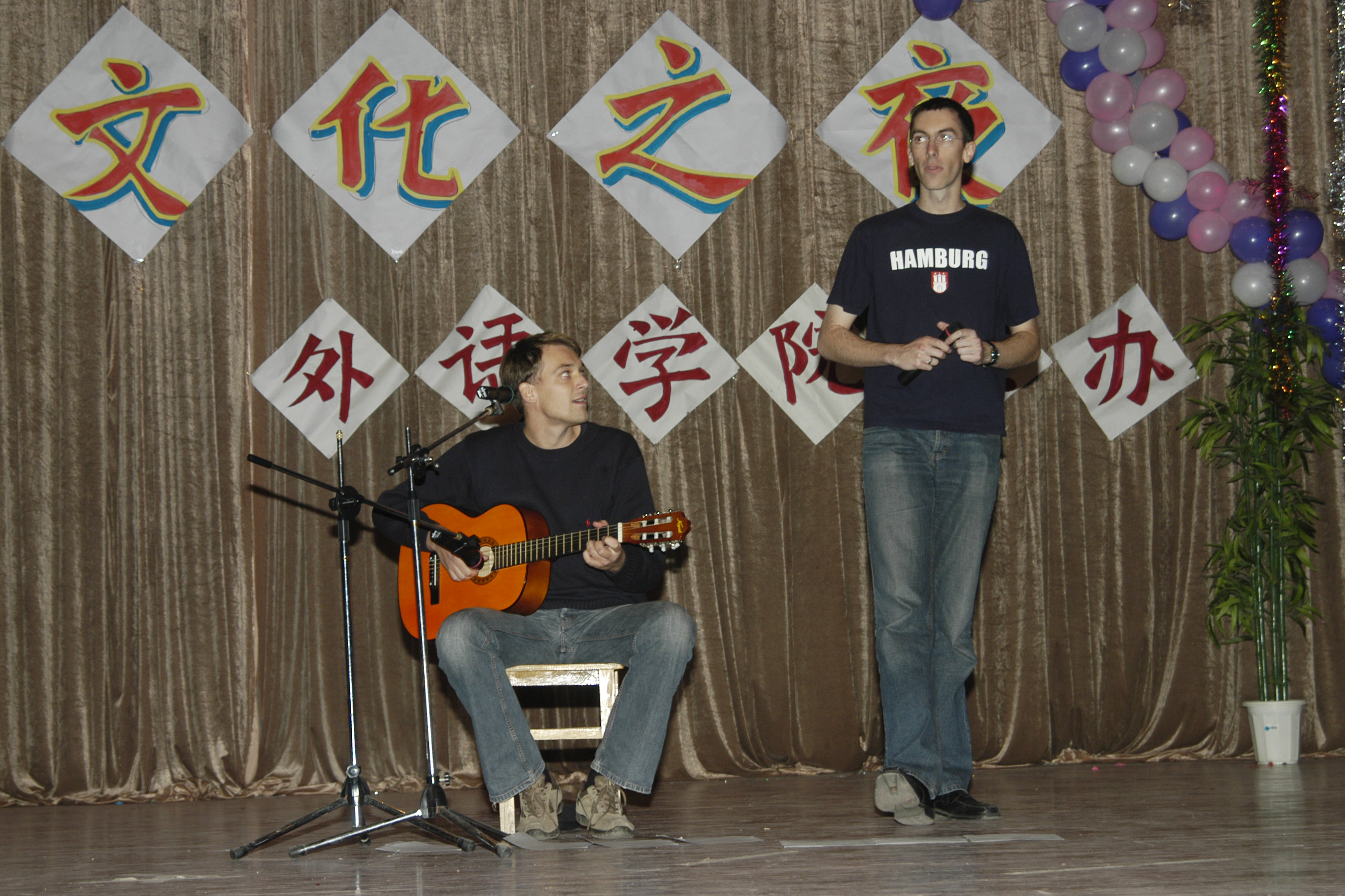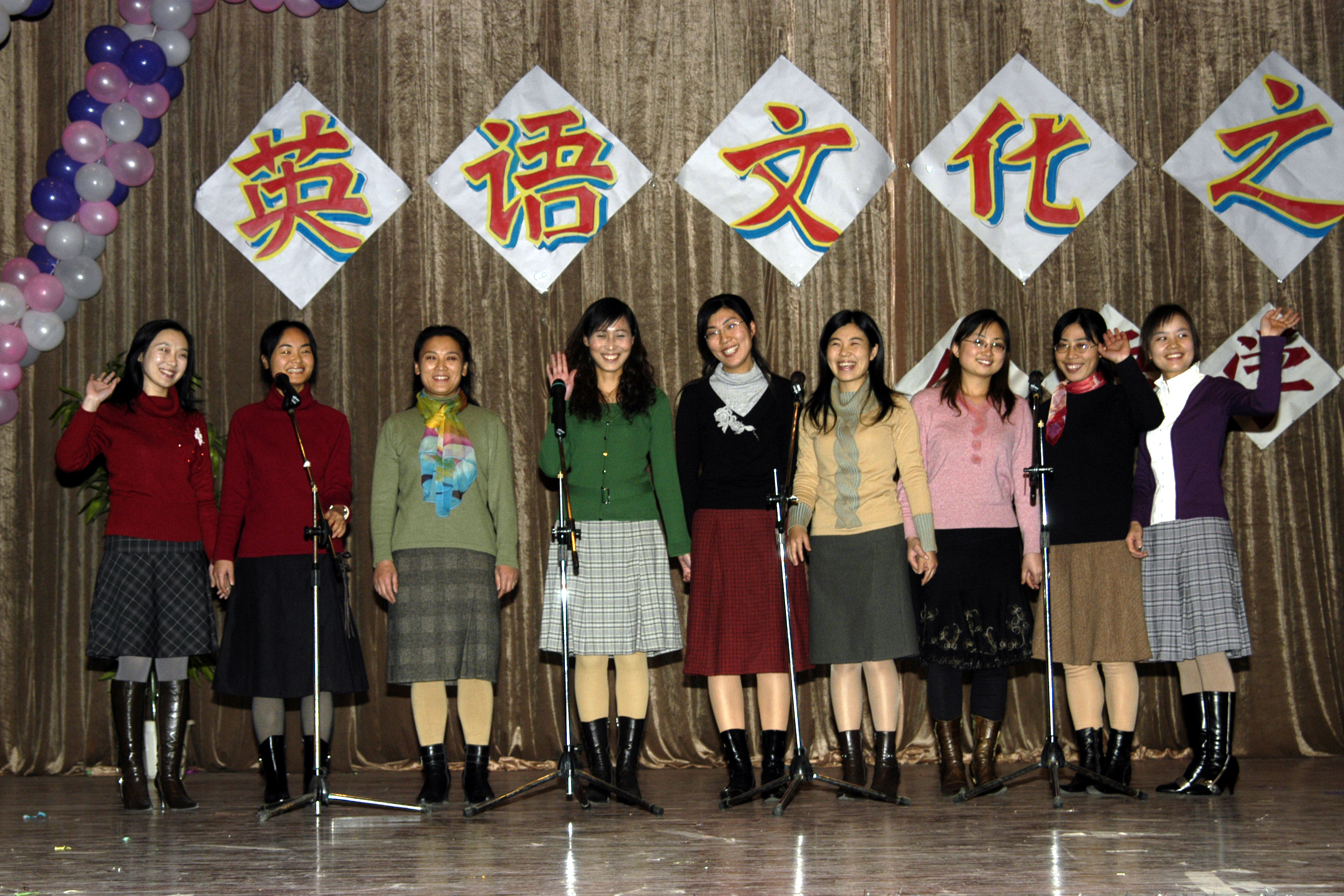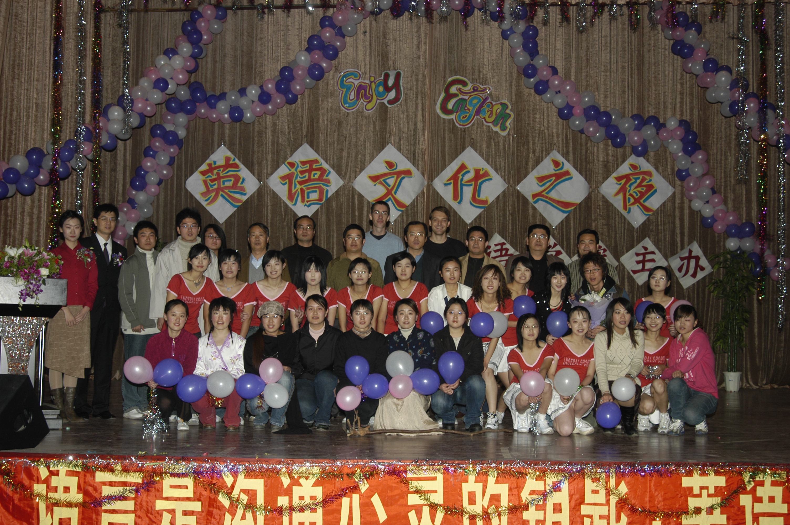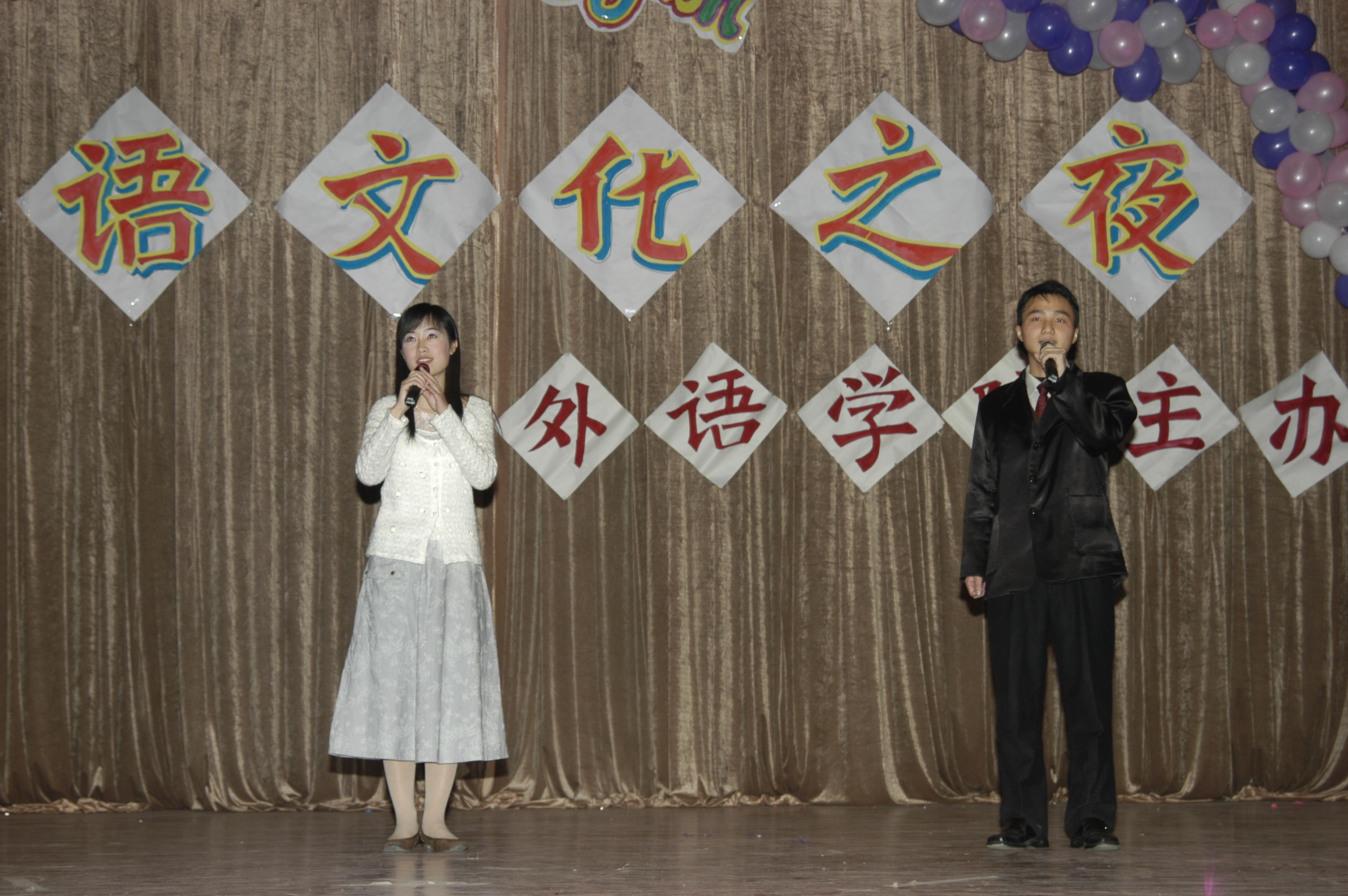 11月24日晚7:15,四方校区第四届英语文化节闭幕式暨Enjoy English英语文化之夜,在鲜花和掌声中拉开帷幕。 校党委副书记杨向荣、学生处处长王菁华、团委书记陈伟、研究生处副处长管锡君、科技处副处长李建国、后勤处副处长耿殿国、外语学院党总支书记孙思经、外国语学院院长刘春堂、外国语学院副院长孙玉洁、建筑学院党总支副书记侯方高、环境学院党总支副书记王雄、外国语学院党总支副书记郭兰成、通信学院团总支书记柳志广、高职成教学院教学部主任冯学军等出席闭幕式,并观看了英语文化之夜精彩演出。外国语学院教师郭印、学生张钦主持。