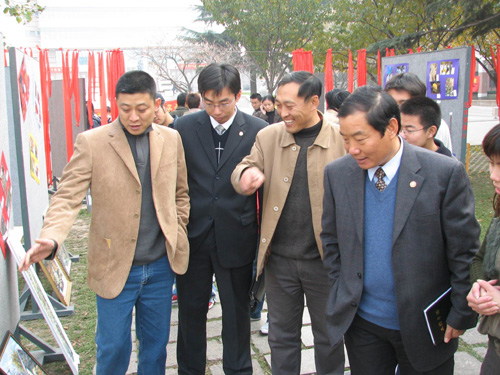 校党委副书记杨向荣教授(右三)和学校其他领导在展览前合影