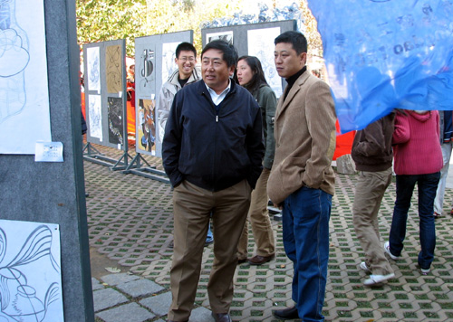 艺术学院院长韩勇教授(左一)观看展览