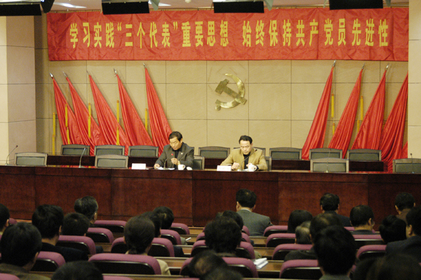 耿喜华书记说,先进性教育活动进入分析评议阶段后,校领导班子围绕贯彻落实党的十六大和十六届三中、四中、五中全会精神与上级党委的重大部署精神,围绕树立和落实科学发展观、坚持党的宗旨、加强和改进党的建设、加强党风廉政建设等工作,结合学校当前改革发展稳定中存在的突出矛盾和问题,圆满完成了“深化学习、讨论确定共产党员先进性具体要求和不合格党员主要表现、开展征求意见、开展谈心活动、撰写党性分析材料、召开专题生活会、提出评议意见”等七个步骤的“规定动作”,同时坚持边议边改的原则,着手建立健全各项规章制度,对查摆出来的问题能解决的立即进行解决,为后续的整改提高和建立长效机制奠定了基础。