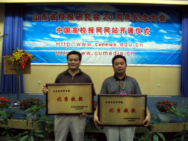在热烈的掌声中,方延明和展涛上台为中国高校校报新闻网站揭牌,展涛校长同时点击开通了“中国高校报网”(www.cunews.edu.cn)。“中国高校报网”以全国高校校报作为主要新闻来源,以发布关于高校的权威性新闻,提供有关高校新闻的全文检索服务为主要内容,由中国高校校报协会主办、山东省高校校报研究会协办、山东大学报社具体承办。中国高校报网的开通,标志着全国1000多家高校报纸有了共同的网上新闻发布平台。 会议期间,听取了社科院新闻所、《大众日报》等专家学者作的学术报告,还开展了学术交流、办报经验交流等活动。 山东省高校校报研究会为山东省一级学会,成立于1984年,经过20年的发展,由当时的16家校报发展到目前的54家。会员从当时的44人发展到目前的200余人。有14家校报被评为山东省优秀级报纸。 (郭兰成)