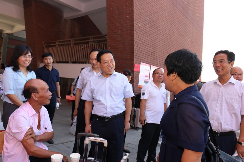 在学生公寓,谭秀森与新生及家长亲切交流。他向新生家长简要介绍学校情况,请家长们放心,学校会努力为孩子们创造良好的成长成才环境,着力将新生培养成祖国栋梁。他勉励新同学要珍惜大学时光,锻炼独立能力,不断提升自我,奋力追逐梦想,度过充实而有意义的大学时光。