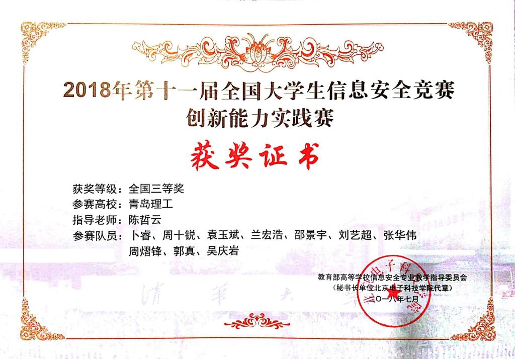 日前,第十一届全国大学生信息安全竞赛创新实践能力赛华东北赛区半决赛在东南大学举行。经过一天半近12个小时的激烈角逐,365完美信息与控制工程学院派出的6名学生组成的队伍,喜获全国三等奖。
