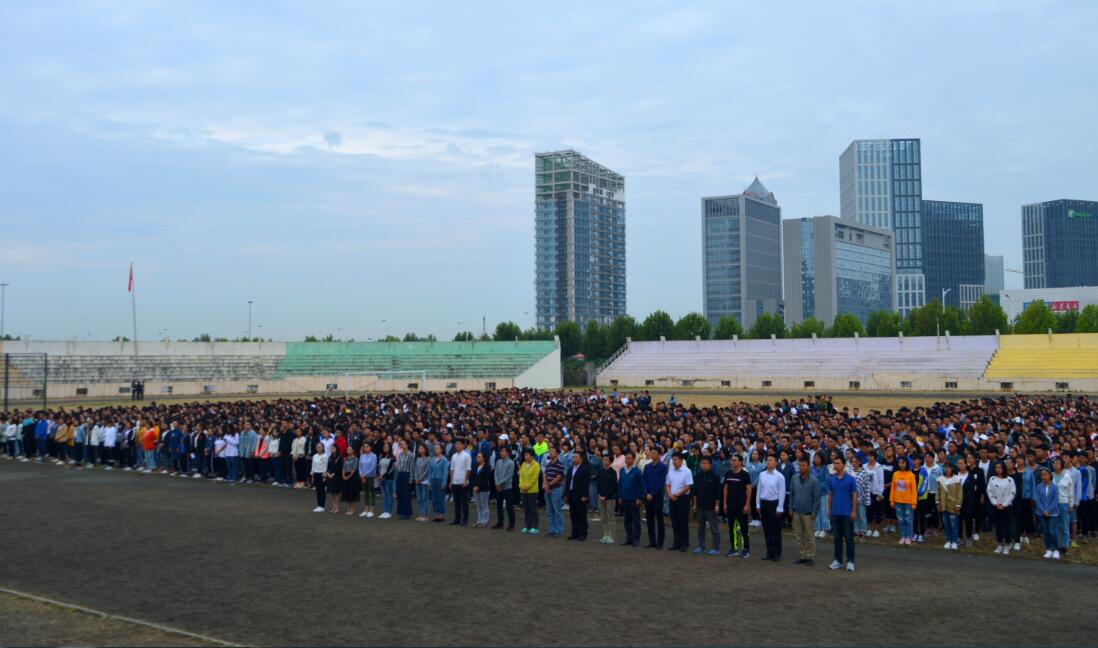 早6:30,身姿挺拔的国旗护卫队队员踏着整齐的步伐,护送国旗抵达升旗台。伴随着雄壮激昂的国歌声,五星红旗冉冉升起,迎风飘扬。全体师生庄严肃穆,齐唱国歌。在市北校区、临沂校区,主持人介绍了“九一八”事变,学生代表的朗诵带领师生们重温了八十七年前那段国家满目疮痍、支离破碎的的历史,让大家加倍珍惜当下幸福生活来之不易,更加坚定信心和意志开创美好未来。黄岛校区各学院学生代表发言,带领大家共同回顾了“九一八”事变的历史和革命先烈艰苦卓绝的抗战,表达了全体新生铭记历史,警钟长鸣和奋发图强、报效祖国的坚定决心。