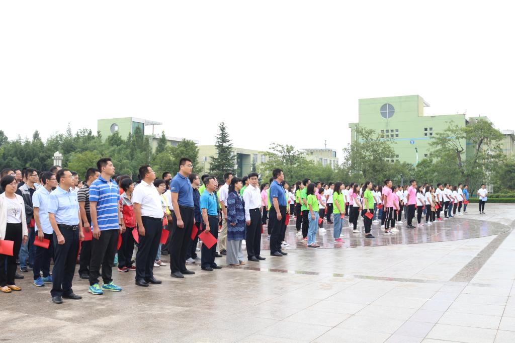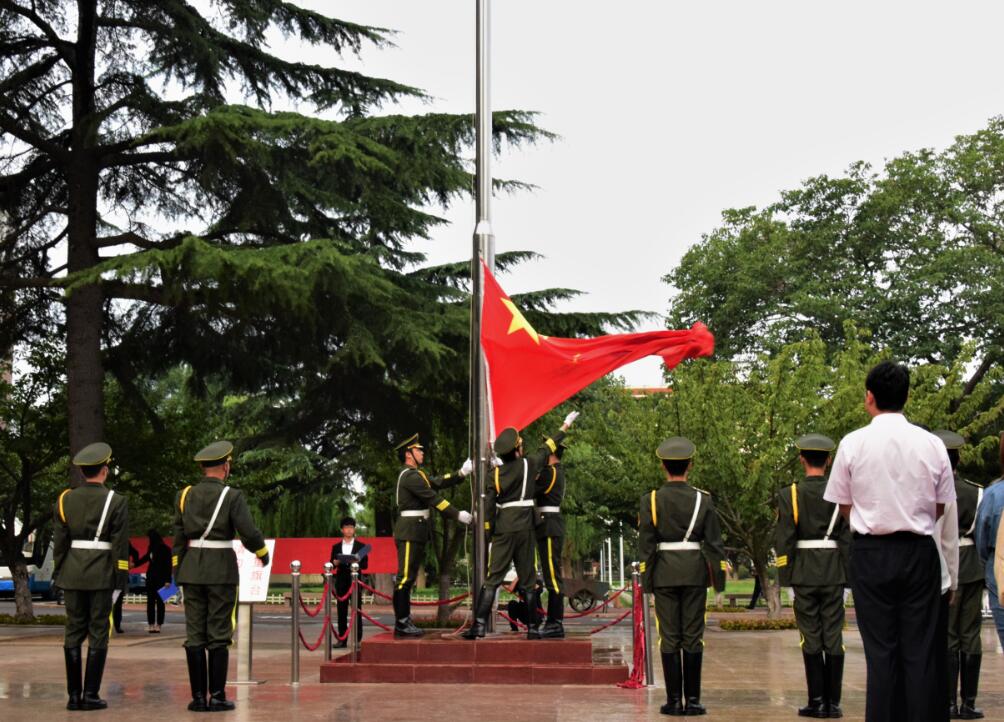 为牢记抗战历史,缅怀先烈伟绩,培育民族精神,进一步激发学生的爱国热情,9月18日清晨,学校举行“勿忘国耻,振兴中华”纪念“九一八事变”87周年升国旗仪式。本次活动由团委、学生工作部主办,校党委常委、副校长、临沂校区党委书记李国华,学生工作部、团委、临沂校区管理办公室负责人、各学院党总支副书记、团总支书记及新生辅导员、教工党员代表出席活动,2018级全体新生参加了升旗仪式。