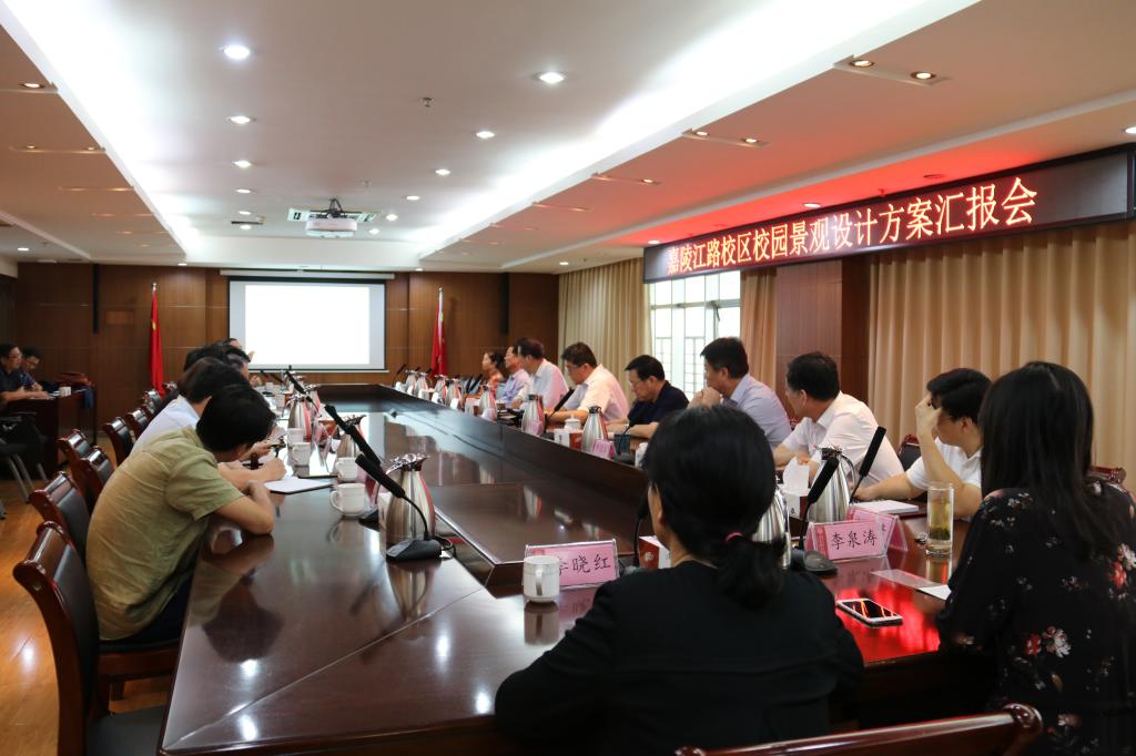 9月19日下午,学校在图书科技楼1908会议室召开嘉陵江路校区校园景观绿化设计方案汇报会。校党委书记王亚军,校长谭秀森,党委副书记张殿恒,副校长李国华、张伟星、齐德义,纪委书记尹东峰出席会议,副校长杨兴昌主持会议。校长办公室、新校区建设办公室、建筑与城乡规划学院、艺术与设计学院等部门单位有关同志,建筑设计研究院及其设计合作单位泛亚国际景观设计有限公司设计团队主创人员参加会议。