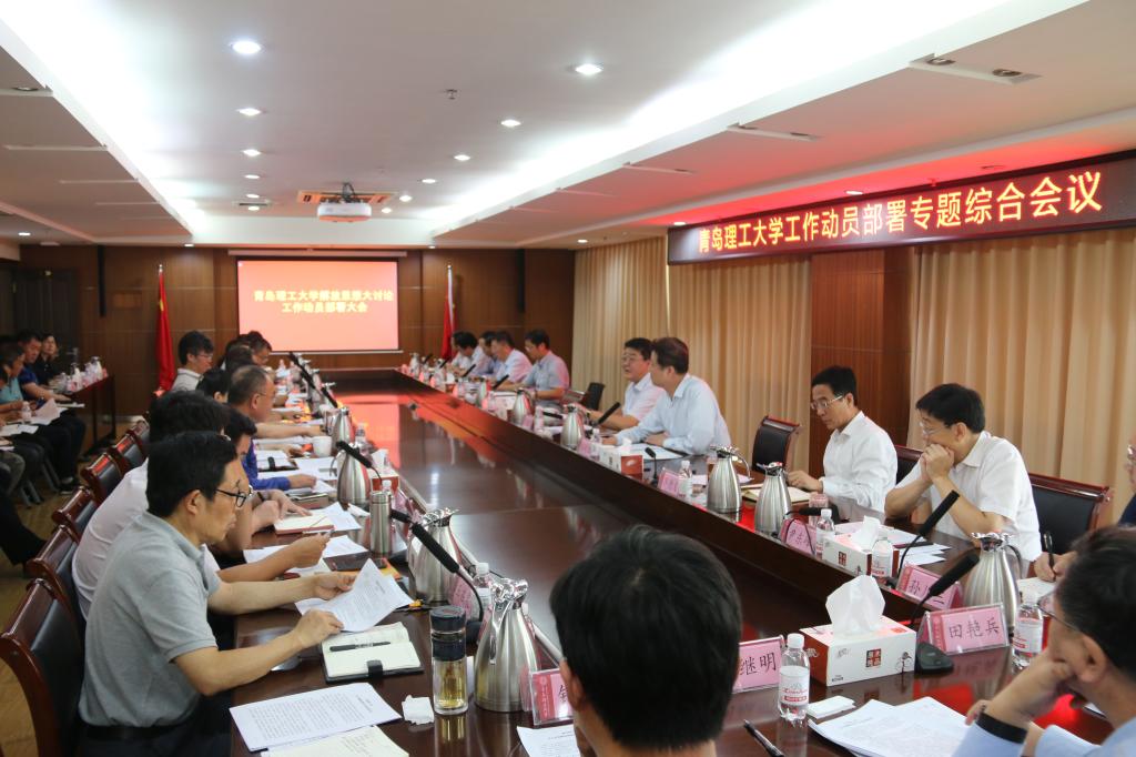王亚军代表学校党委就做好解放思想大讨论工作,强调四个方面:一是提高政治站位,统一思想认识,深刻认识推进思想大解放的重要意义。开展解放思想大讨论是省委、省政府为深入贯彻习近平新时代中国特色社会主义思想,切实落实习近平总书记视察山东系列重要讲话和重要指示要求,深刻剖析山东发展滞后的根源,以壮士断腕、凤凰涅槃的气魄,转方式、调结构、去产能,运用新理念、新思想、新标准、新要求来统筹引领发展的重要举措。作为省属高校,我们责无旁贷。此次大讨论开展适值学校综合改革进入深水区的关键时期,通过解放思想大讨论,查摆存在的问题,推动落实综合改革的具体措施,解决制约学校内涵式发展,质量提升,以及一流特色高水平大学建设的痛点、难点和堵点。通过解放思想大讨论,在改革开放四十周年之际,进一步统一思想认识,夯实发展基础,达成共识,瞄准目标,迎接新一轮的学科和专业布局,重整行囊再出发。