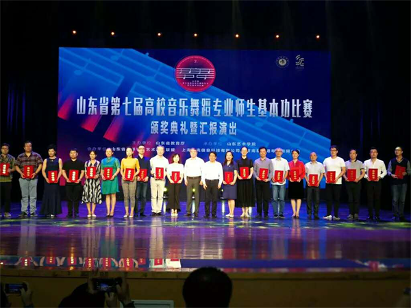 山东省高校音乐舞蹈专业师生基本功大赛是山东省教育厅主办的最具权威的省级赛事,每三年一届,旨在检验、展示我省高校音乐舞蹈专业教学质量和教学成果。本次比赛共有来自全省48所高校1200余名师生报名参加,山东省教育厅邓云峰厅长等有关领导出席了颁奖典礼。