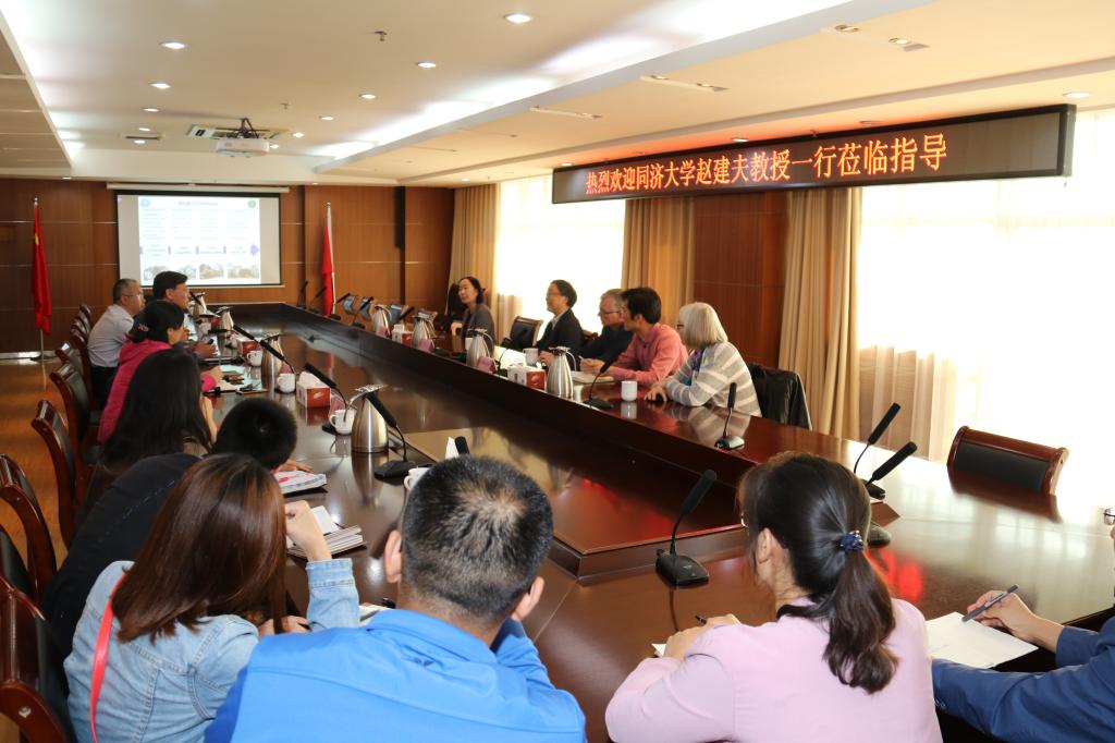 在图书科技楼会议室,环境与市政工程学院相关负责人及学院教师代表,与赵建夫教授、瑞典Åke Bergman教授就环境学院一流学科建设进行了深入交流。