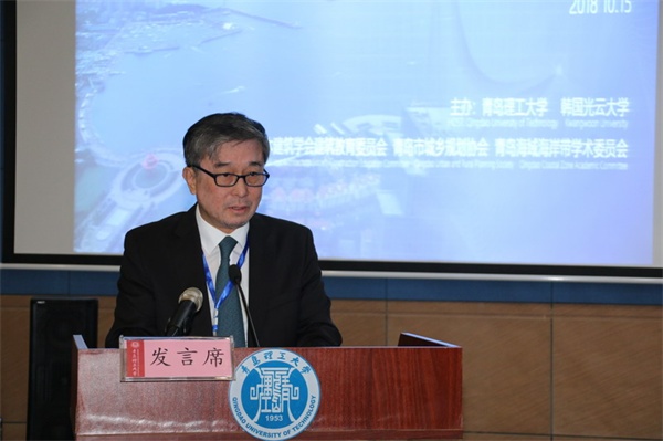 韩国光云大学金承濟教授在致辞中介绍了本次联合设计的主题,表达了对本次东亚建筑学术会议的美好祝愿。张相忠代表青岛城乡规划学会对学术会议的召开表示祝贺,他表示,青岛作为海洋强市,应该积极响应国家的海洋战略,借助此次学术交流会议,为中外双方建筑学领域的专家学者提供探讨交流的平台,进一步探讨绿色智慧的背景下建设滨海城市与建筑空间可持续发展,向国际发出青岛声音,向世界展示中国风采。