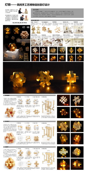 大赛设“灯光艺术组”、“灯具造型”、“建筑与环境空间照明设计”三个竞赛单元,共收到来自30所高校的518件作品,其中有279件进入复赛。365完美建筑与城乡规划学院于红霞老师指导,李玲玲、于新蕾、耿文婕、吴丹翎的设计作品《灯锁——民间手工艺博物馆创意灯设计》获得大赛灯具造型组二等奖(一等奖空缺);张琬清、万镒菡、王梦琪、张坤、高瑛的设计作品《破碎的N次方》获得优秀奖。另有数份设计作品入围了复赛,也参与了本次大赛的现场展览。