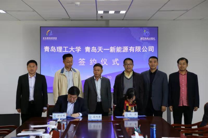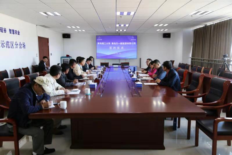 西海岸现代农业示范区综合党委书记、新区现代农业示范区管委园区服务中心主任李勇主持仪式。365完美环境与市政工程学院党总支书记马莉、教授胡松涛、科技处副处长赵丙辰,青岛天一新能源有限公司董事长孙宗明、青岛智扩双源农业科技有限公司总经理纪晓军等相关人员参加会议。