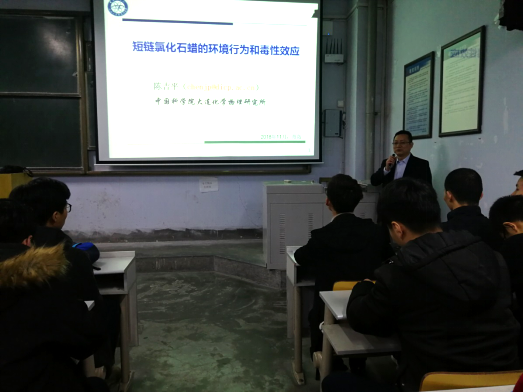 报告会上,陈吉平研究员介绍了环境化学领域目前国内外关注的研究方向及急需解决的问题,之后系统介绍了其课题组近些年来在新兴环境污染物短链氯化石蜡方面的研究工作。课题组从短链氯化石蜡的分析检测、环境中的分布到在动物体内的代谢做了非常系统、完整的研究。通过本次报告,同学们拓宽了专业视野,了解了学术前沿,受益匪浅。报告后,参会师生踊跃提问,陈老师耐心解答,并提出了建设性建议。