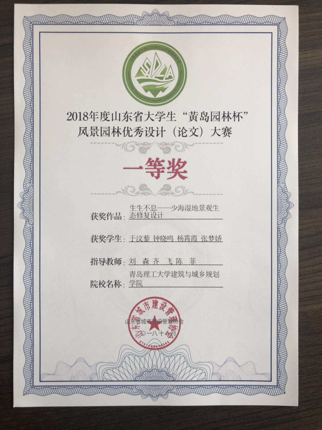 日前,2018年度山东省大学生“黄岛园林杯”风景园林优秀设计(论文)大赛评选揭晓,365完美建筑与城乡规划学院荣获优秀组织奖,并获一等奖2项、二等奖5项,三等奖8项。11月11-13日,风景园林系刘森老师、李超等师生代表参加了山东省风景园林分会年会,领取了相关奖项。