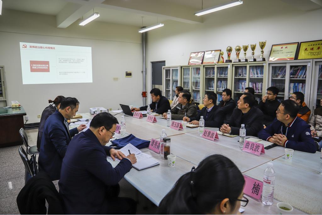 董典同围绕学院“党总支基本情况”、“学习贯彻党的十九大精神情况”、“党总支发挥政治核心作用情况”、“推进‘两学一做’学习教育常态化和制度化情况”、“党员发展和教育管理情况”、“党建工作重点任务清单、党建质量年、作风建设年、党组织 ‘对标争先’计划相关工作落实情况”、“落实意识形态工作情况”和“党总支党建品牌创建及党建特色工作情况”等八个方面对学院2018年党建工作进行了系统的汇报。