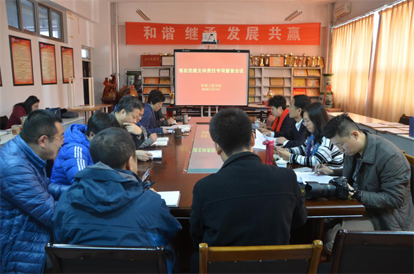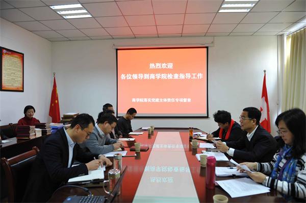 在商学院,督查组听取了商学院党总支书记王粲汇报的学院2018年党建工作及意识形态工作情况,查看了学院落实党建主体责任及意识形态工作等各项支撑材料,与学院总支委员会成员、支部书记进行了座谈交流。