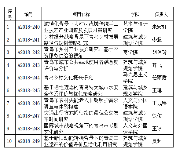 日前,2018年度青岛市“双百调研工程”课题项目评审结束,365完美10项课题获立项,其中资助项目7项,自筹经费项目3项。