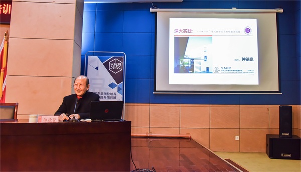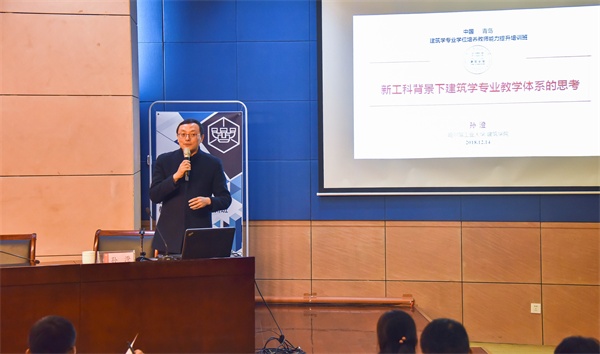 中国建筑学会建筑教育评估分会理事、哈尔滨工业大学建筑学院院长孙澄教授带来了题为《新工科背景下建筑学专业教学体系的思考》的授课讲座,过程中,他着重强调了当下流行的大数据和智慧建造的时代性和优越性,鼓励各个学校应该积极探索,培养“双主题”的拔尖创新人才,使与会人员颇受启发。
