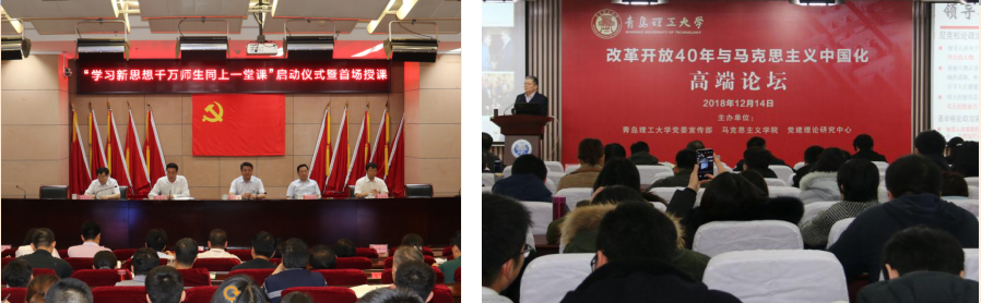 启动了“学习新思想千万师生同上一堂课”,成立了党建理论研究中心,举办了首届习近平新时代党建思想学术研讨会、“改革开放40年与马克思主义中国化”高端论坛。