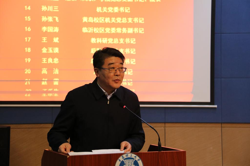 王亚军对党总支(分党委)书记述职情况进行逐一点评并讲话。他指出,2018年全校各级党组织牢牢把握和坚持加强党的全面领导这个根本原则,坚持党要管党、全面从严治党,全面落实新时代党的建设总要求,紧紧抓住全面从严治党这条主线,以党的政治建设为统领,提高政治站位、履行政治责任、强化政治担当,深入贯彻落实各项工作部署,在推动基层组织建设全面提升全面过硬上取得了明显成效,为推动学校事业发展提供了坚强政治和组织保证。