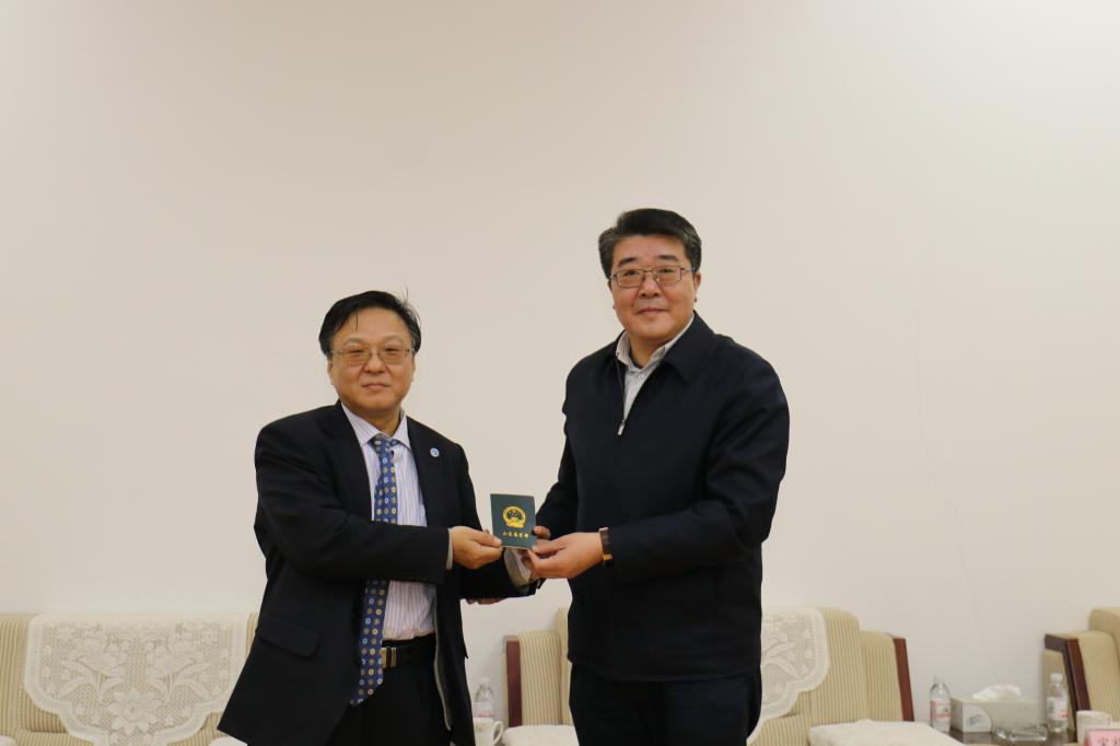逄建辉代表青岛西海岸新区向高伟俊院士赠送了礼物,王亚军代表学校向高伟俊院士颁发了由中共山东省委组织部和人社厅制发的《山东惠才卡》。