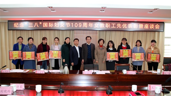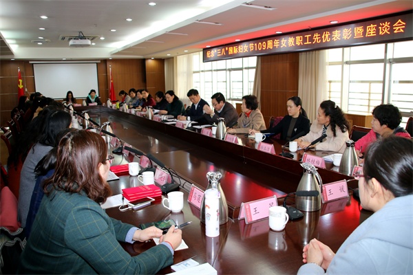 3月6日下午,学校召开纪念“三八”国际妇女节109周年女教职工先优表彰暨座谈会。副校长于德湖,校工会、妇委会负责人与50多名女教职工代表欢聚一堂,表彰先进,分享经验,庆祝节日。