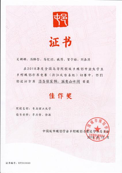 日前,从2018年度乡村发展研讨会暨第二届届全国高等院校城乡规划专业大学生乡村规划竞赛方案评优会传来喜讯,365完美建筑与城乡规划学院城乡规划专业本科四年级学生吴姗姗、冯琳哲、马欣玥、臧倩、贺子皓、刘嘉源(指导教师:李兵营、徐敏)的作品《活态张家桐,画意山水间》获得佳作奖。