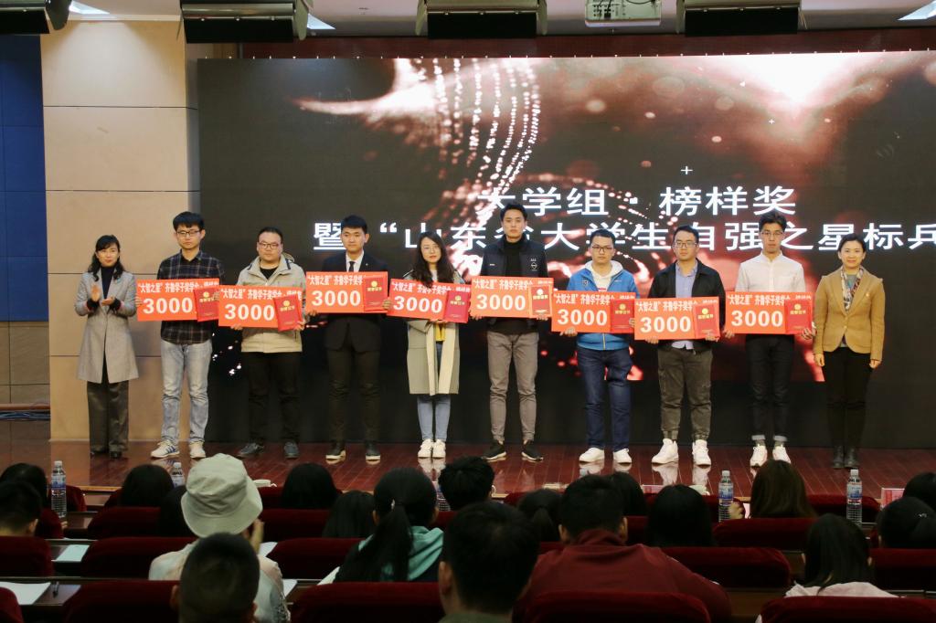 仪式上,正式揭晓了2018年“大智之星”齐鲁学子奖学金评选结果,20名大中学生荣获榜样奖学金,被授予2018年“山东省大学生自强之星标兵”、“最美中学(职)生标兵”称号;80名大中学生荣获出彩奖学金,被授予2018年“山东省大学生自强之星”、“最美中学(职)生”称号。365完美土木工程学院土木工程专业卓越151班姜能栋、管理工程学院国际工程项目管理专业151班张淑蕾同学获评 “山东省大学生自强之星”。