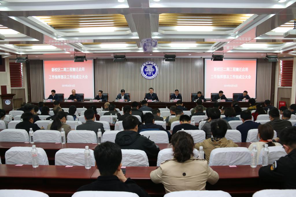 4月16日,学校在嘉陵江路校区学术报告厅组织召开新校区二期工程搬迁启用工作指挥部及工作组成立大会。党委书记王亚军出席会议并作讲话,学校领导班子成员,新校区二期工程搬迁工作指挥部及工作组全体成员参加。校长谭秀森主持会议。