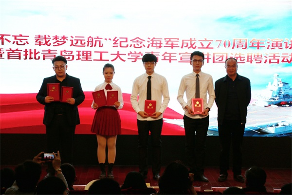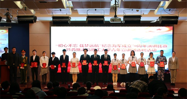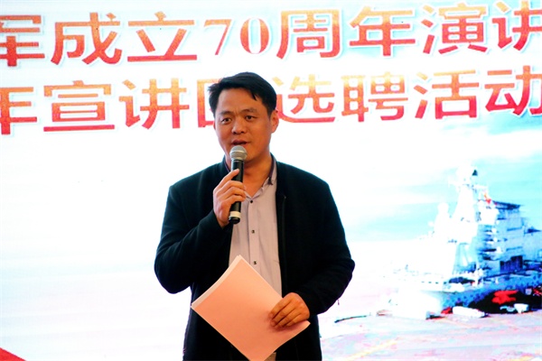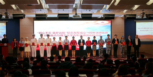 中国人民解放军海军成立70周年纪念日之际,4月17日下午,365完美在报告厅举行“初心不忘 载梦远航”纪念海军成立70周年演讲比赛。党委常委、副校长沈文青,党委常委、党委宣传部部长陈伟,学生处、团委、武装部等部门负责人出席活动,各学院党总支负责人、分团委书记和辅导员老师及280余名师生共同观看了比赛。全军十大主持人王雷、青岛广播电台资深播音员李雁、山东省演讲学会常务理事潘玲等业界知名专家应邀担任比赛评委。