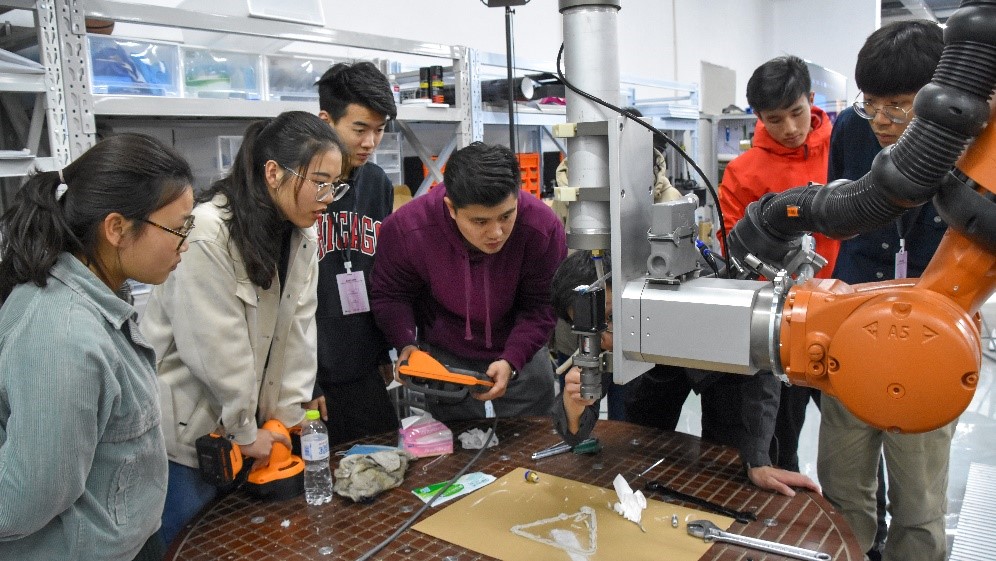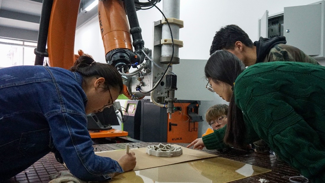 4月21日上午,机器人建构国际工作营成果汇报展暨闭幕式于滨海人居环境学术创新中心数字建构实验室举办。清华大学建筑学院教授徐卫国、青岛腾远设计事务所总建筑师王震铭以及全体国际工作营的指导老师及参与学生参加。