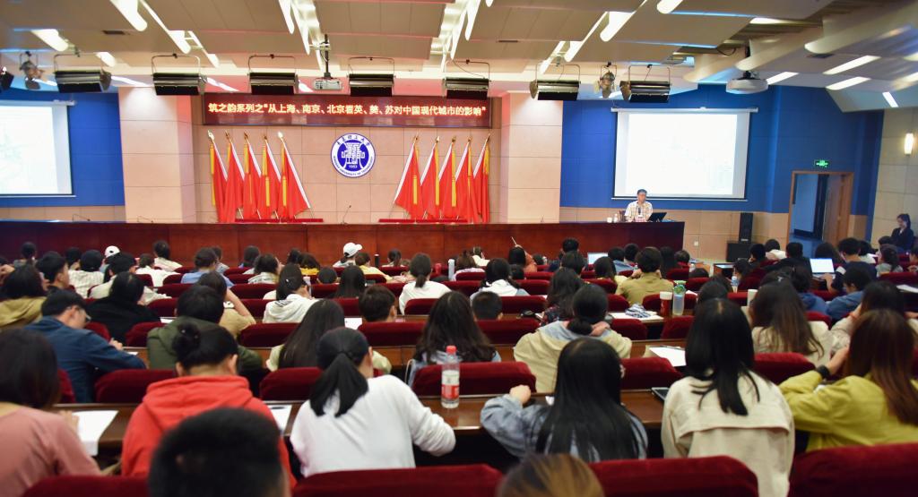 5月10日下午,赖德霖教授在市北校区学术报告厅主讲筑之韵讲堂第196期《从上海、南京、北京看英、美、苏对中国现代城市的影响》专题讲座。讲座由建筑与城乡规划学院副院长赵琳教授主持,现场座无虚席,吸引了300余名师生前来参加。