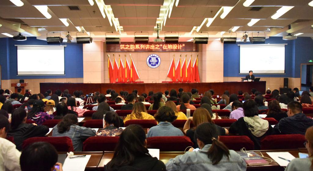 随后,王兴田主讲筑之韵讲堂第197期《在地设计》学术讲座,高伟俊、郝赤彪、许从宝等300余名师生到场参加,现场座无虚席,学术讲座由许从宝主持。