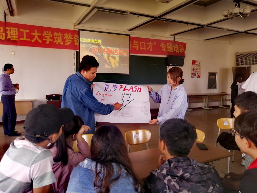 该培训分理论讲解和实践锻炼两部分。一言之辩,重于九鼎之宝;三寸之舌,强于百万雄师。在理论环节,培训老师通过大量生动的案例以及自身丰富的从业经验,从演讲内容、方式、礼仪等多方面讲授了演讲与口才的知识技巧;在实践环节,培训老师借助形式新颖、内涵丰富的活动形式,带领同学们现场练习、互动实战,鼓励同学们克服心理障碍、突破自我,上台当众演说。在两天的培训中,同学们积极参与、认真思考,争先上台、挑战自我,锻炼了胆量、增强了自信,真正达到“敢于开口、开口能言、言之有道”的培训效果。培训结束,评选出优秀学员并进行了表彰。