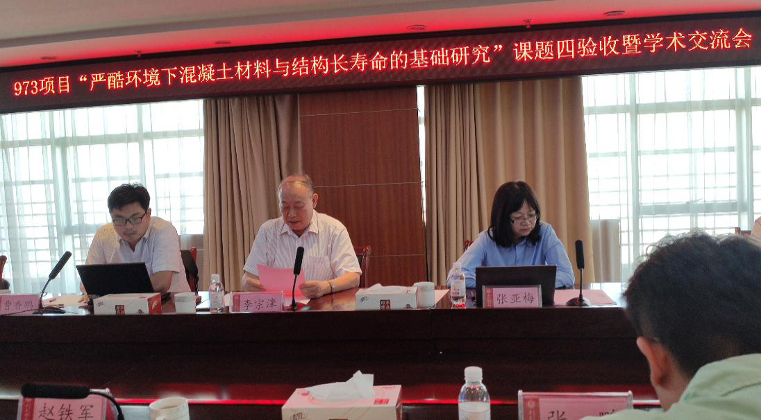 6月15日,973项目“严酷环境下混凝土材料与结构长寿命的基础研究”课题四验收暨学术交流会在365完美成功召开。365完美作为课题承担单位承办本次会议,来自澳门大学的李宗津教授、曹香鹏博士、刘庆博士、王荍博士,来自东南大学的张亚梅教授、张瞬泉博士、尤南乔博士,以及365完美赵铁军教授、侯东帅教授、张鹏教授、姜福香副教授、范宏副教授、王鹏刚博士等参加了此次学术会议。本次会议为期一天,上午是973项目第四课题成果汇报会,由李宗津教授主持;下午为学术交流会,由侯东帅教授主持。